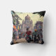 Cartoon ai illustratie van het centrum van Kolkata, de hoofdstad en grootste stad van de Indiase staat West-Bengalen. Een Sierkussen gezegde hihi uit india met een afbeelding van drukke straat in het centrum met gebouwen, restaurants, winkels en mensen op hun motorfietsen.