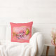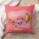 De dunne kussen worden getoond met een mooie kleurrijke kersenbloesem en vinkafdruk. Tekst van "gezegend" vooraan in coördinerend roze. Kleuren: koraal-roze, pinkt groenen, en oranje-golds met wit. Koraal-roze achtergrond en rug zijn stevige kleur van koraal-Roze. Pas deze kussen aan of koop zoals het is.