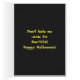 Deze kaart is voorzien van een schattig spook en de achtergrond is donkergrijs met gele polka stippen voor de voorkant. Deze ghofelijke Halloween-kaart is perfect voor je vrienden en familie.