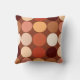 Kussen in een Mid-Century Moderne geometrische afdruk van reuzenstippen, in een rooster van negen coördinerende kleuren - tinten van bruin, donkerbruin, roest, terracotta en crème op een chocoladebruine achtergrond