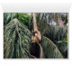 Un singe Gibbon blanc est un singe de sexe féminin, accroché à un arbre avec son bras.