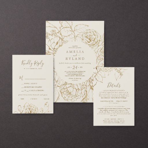 Gilded Floral | Cards voor crème en gouden bruilof Kaart