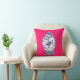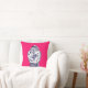 Dit kussen bevat een origineel schilderij van kunstenaar Anne Harwell, een antiek Chinese porseleinen gemberpot in een delicate details, met blauw en wit op een dieproze achtergrond