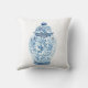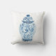 Deze kussen hebben een klassieke blauwe en witte porseleinen gemberpot op basis van een oud Chinees artefact. Van een origineel gouache/inkt schilderij van kunstenaar Anne Harwell.