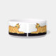 Een rode gestreepte kat met een blauwgroen kraag op een zwart oppervlak, vooruitkijkend.