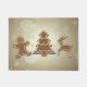 Elegant en heerlijk kerstschilderij: Verdroogde kerstboom voor ontbijtkoek, ontbijtkoek en herten met gouden sterren tegen een bruine achtergrond.