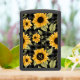 Het opvallende zonnebloempatroon valt prachtig op tegen een zwart en grijs gingham decor