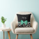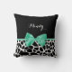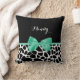 Een klein zwart-wit girafdruk gooit een kussen met een groen lintje dat in een schattige boog vastzit. Pas dit trendy dierafdrukontwerp aan door jouw naam toe te voegen. De omgekeerde kant heeft een zwart-wit girafpatroon. Platte afbeelding, geen echte boog.