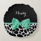 Giraffe Afdrukmint Groene Bow met naam Rond Kussen