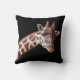 Geïsoleerde portretfotografie van een giraf in zwart-wit op de voorzijde en in kleur op de achterzijde op een zwarte achtergrond.