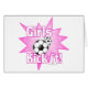 Meisjes schoppen het op het Soccer-veld. roze glitter en kleurrijke barsten met Voetballen. Geweldig shirt voor een voetbalwedstrijd voor meisjes.