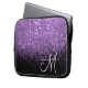 Girly Monogram Paars Glitter Sparkle & Black Laptop Sleeve