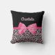 Girly Pink Black Leopard Print Cute Bow and Name Kussen