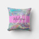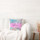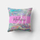 Girly regenboog holografische iriserende monogram naam en initiaal gooi kussen. Uw aangepaste naam en monogram zijn geschreven in een elegant handgeschreven schrift met een roze achtergrond. Een perfect verjaardags- of kerstcadeau!