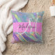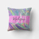 Girly regenboog holografische iriserende monogram naam en initiaal gooi kussen. Uw aangepaste naam en monogram zijn geschreven in een elegant handgeschreven schrift met een roze achtergrond. Een perfect verjaardags- of kerstcadeau!
