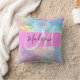 Girly regenboog holografische iriserende monogram naam en initiaal gooi kussen. Uw aangepaste naam en monogram zijn geschreven in een elegant handgeschreven schrift met een roze achtergrond. Een perfect verjaardags- of kerstcadeau!