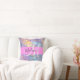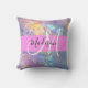 Girly roze, perzik en aqua holografische iriserende monogram naam en initiaal gooi kussen. Uw aangepaste naam en monogram zijn geschreven in een elegant handgeschreven schrift met een roze achtergrond. Een perfect verjaardags- of kerstcadeau!