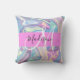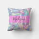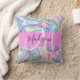Girly roze, aqua en turquoise holografische iriserende monogram naam en initiaal gooi kussen. Uw aangepaste naam en monogram zijn geschreven in een elegant handgeschreven schrift met een roze achtergrond. Een perfect verjaardags- of kerstcadeau!