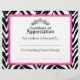 © 2013 Socialite Design. Ons korrelige certificaat van waardestijging design heeft een zilveren tiara/kroon, zebrastrepen patroonachtergrond en een roze kant met scalloped certificaat edge. Een prachtig certificaat voor een wedstrijd.