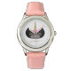 Dit schattige aangepaste horloge voor meisjes heeft een meisjesachtig zwart caticorn gezicht met gouden wimpers, roze hart mond, gouden hoorn en prinses kroon. Hieronder is een monogram naam in faux gold modern script te personaliseren. Het horloge heeft ook gouden vinkjes met markeringen voor seconden en uren. Ontworpen door Susan Coffey.