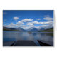 Glacier National Park-fotografie. Boats en dek in het prachtige meer, de berg, de blauwe lucht en de wolken.