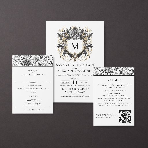 zwartwitelegantklassiekfloreelbloemrozenbloemengoudqr code