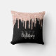Stijlvolle monogrammed glitter drip werpen kussen - Gelaagde roze glitter druppelt op een zwarte achtergrond met een aanpasbare witte manuscriptnaam sjabloon en vette monogram in grijs.