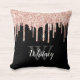 Glam Pink Glitter Drip Zwart Monogram Letter Kussen