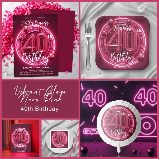 Vibrant Glam Neon Pink 40th BirthdayOntworpen door Kristina Lj Petrovska