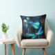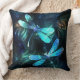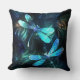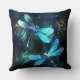 Twee doorzichtige, lichtgevende, turquoise, artistiek getekende libellen op een nachtblauwe achtergrond met lichtgevende algen en vuurvliegjes in het meer. Lichtgevende libel.
