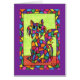 Deze unieke en kleurrijke kat zit tegen een lentegroenachtergrond en glijdt naar de kijker. Ze toont haar meerkleurige mozaïekachtige markeringen die lijken op gekleurd glas. De volledige scène wordt omringd door een gedetailleerde multicolored grens die haar markeringen aanpast.