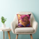 Schattig 3D kussen met een gestileerde cartoon meisje met een bruine en levendige roze haar, vastgelegd in een vrolijke lach onder goed licht. Een charmant en uniek decoratief accent.