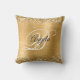 Faux glanzend glanzend glitter met sparkles tegen een coördinerende faux geborsteld metaal gouden gele folie grafisch afbeelding op een aanpasbare buitenwerpkussen. De fancy zwarte en witte stijl van de calligrafische doopvont van de naam en het monogram in het centrum kunnen worden aangepast. Alle dunne en glanzende elementen in dit moderne, girale ontwerp zijn digitale beelden. Een luxe voor de verjaardag van je dochter.