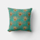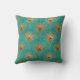 werpkussens zijn voorzien van gouden glitter peace-veren patroon op aqua-achtergrond.