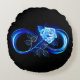 Luminous infinity symbol with glowing, beautiful, lushly blooming rose made of blue flames on black background.