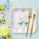 This cute and retro "fast one" boy's 1st/first birthday paper cup features a red race car on a white background with gingham/buffalo plaid in gray. Personalize it for your needs. You can find matching products at my store