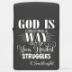 Deze zwarte aansteker heeft een krachtige Christelijke boodschap: "GOD CREËER EEN WEG UIT JE MOEILIJKSTE WORSTELINGEN." De gedurfde, witte belettering biedt inspiratie en aanmoediging. Dit shirt is ideaal om geloof en toewijding tot uitdrukking te brengen en dient als een spirituele herinnering aan hoop en veerkracht in het dagelijks leven. Het is een casual maar betekenisvol statement.