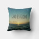 God is een goede quote Kussens. Inspirerend, motivatie Christelijke quotes/berichten voor het gooien van kussens. Dit ontwerp is voorzien van een strand thema ontwerp (zonsondergang over de oceaan) met een blauwe tint voor een retro geïnspireerd gevoel, framing het citaat, "God is goed".