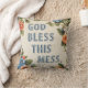 "Voeg charme en eigenzinnigheid toe aan uw ruimte met dit prachtige kussen, met een faux gewikkeld canvas ontwerp met een prachtige borduurlook van naaldpunt. Het ontwerp toont een delicate bloemrand met levendige oranje en blauwe bloemen verweven met bladeren op een zachte, natuurlijke achtergrond. De uitdrukking 'God zegene deze puinhoop' is elegant gestikt in een blauw lettertype, waardoor humor en warmte in uw interieur worden gebracht. Perfect voor woonkamers, keukens of ingangen, dit kussen is ideaal voor diegenen die houden van eigenzinnige, door geloof geïnspireerde kunstwerken met een rustieke, handgemaakte touch. De natuurlijke tinten en levendige kleuren maken het een veelzijdige toevoeging, die een aanvulling vormt op moderne, boerderij- of boho-stijlen.