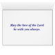 God zegene U Kaart met blauwe sneeuwkapotte bergen aan de voorkant. De binnenkant leest: "Moge de liefde van de Heer altijd bij jou zijn." Op de achterkant staat: "Heb geloof." Deze kaart is perfect voor iedereen die een zegen, een glimlach nodig heeft of met iets in hun leven worstelt. Iedereen zou een zegen kunnen gebruiken.