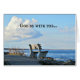 Coastal Maine gezien vanaf de Marginal Way, Ogunquit. Een lege parkbank zit naast het water en de boodschap luidt: "God zij met u" aan de buitenkant. Binnen staan de woorden: "Tot we elkaar weer ontmoeten." Mooie kaart voor de Christelijke vriend die verhuist of voor een tijd weggaat.