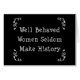 Dit prachtige ontwerp kenmerkt het citaat van Laurel Thatcher Ulrich: "Goed gedragen vrouwen maken zelden Geschiedenis", gemaakt door handgetekende scrollwork accenten! Dit ontwerp is perfect voor die sterke vrouwen die hun eigen regels maken en niet bang zijn om iets te doen! Laten we naar buiten gaan en een geschiedenis maken!