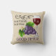 Dit grillige kussen is geweldig voor elke wijnliefhebber. Het ontwerp is voorzien van een glas wijn en druiven, met tekst die luidt "Goede vrienden Goede wijn GOEDE TIJDEN!" Achtergrondkleur kan worden gewijzigd en u kunt de tekst ook personaliseren.