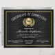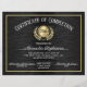 Klassiek, traditioneel en elegant zwart-goudeffect met aanpasbaar certificaat van invulling. Schrijfbriefformaat 8,5 x11" voor het behalen van een studiecertificaat om studenten, werknemers of wie dan ook te belonen voor het afronden van een cursus, school, training of onderwijsprogramma. Voeg uw logo of bedrijfsnaam toe. Ideaal voor elk carrièregebied of voor gebruik in de bedrijfstak.. cosmetologie, afstuderen, barber, autotechnicus, consultant, technologie of elk studieveld. Aangepast ontwerp op een handige zwarte achtergrond met een patroon met een zwarte stijl met gouden lijsten. Beloon de inspanningen van uw studenten en personeel met dit klantgerichte, gepersonaliseerde certificaat. Pas online uw eigen tekst aan, en ordecertificaten die voor uw afstuderen of prijsuitreiking worden gemaakt. De naam van de ontvanger kan worden ingetypt of de lege lijn kan worden verlaten om later met de hand geschreven een witte of gelinkpen toe te voegen.