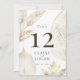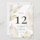 Deze delicate en elegante trouwtafel-nummerkaart heeft een witte achtergrond met bladeren in nep-folie. Pas het aan uw behoeften aan. In mijn winkel kun je passende producten vinden.