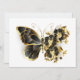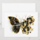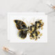 Goudbloemvlinder met zwarte juwelen, versierd met goudbladeren op witte achtergrond.