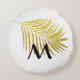 Gold Foil Palm Leaf Tropical Monogrammed Initialen Rond Kussen