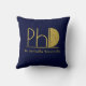 Een PhD-afstuderen gooit kussen met een (niet-bladgoud) goudglitter en blauw ontwerp. Pas eenvoudig met de naam van uw afstuderen aan, voeg deze kussen aan uw kar toe, en geef dit kiepname van hun belangrijkste verwezenlijking.