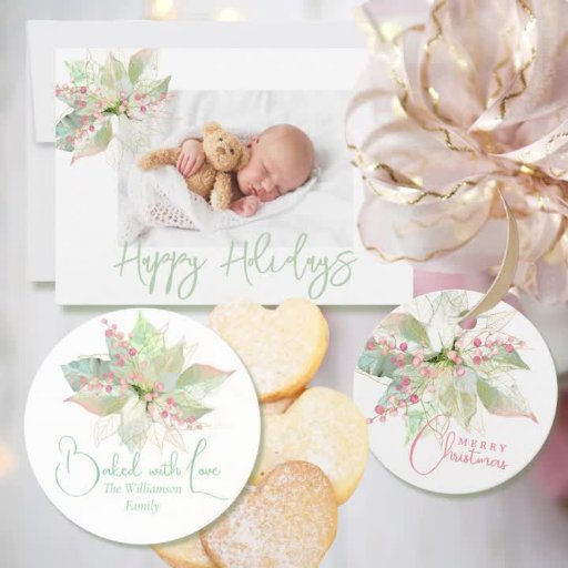 goudschriftpastelroze groene poinsettiaelegante kerst cadeau tagszachte waterverf bloesemtrendychic en geavanceerdmeisjesachtiguniektraditioneelgriezelig