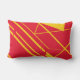 Uitgelicht zijn samensmeltende en vloeiende goudgele lijnen en vormen op een levendige donkerrode achtergrond, die een over het algemeen levendig en levendig diagonaal patroon creëer, geïnspireerd door de hedendaagse kunst, evenals de retro Mid-Century Modern-stijl. Het ontwerp creëer een gevoel van flow en beweging in het patroon van diagonale lijnen en vormen. Het afbeelding creëer heeft een lichte, kunstzinnige en vrolijke uitstraling, die een aangename en ontspannen sfeer uitstraalt voor de woonkamer, de slaapkamer, de werkruimte, het terras of de patio, en een gevoel van warmte en rust biedt. Er is veel decoratiepotentieel in dit accentstuk, dat past in tal van stijlen (vernieuwend tot traditioneel), van retro / tot boerderij tot moderne ranch-stijl tot rustieke hacienda tot urban loft en hoogbouw.